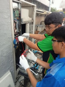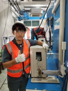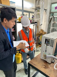1 ปี ที่ผ่านมานำนักศึกษาออกปฏิบัติงานล้าง บำรุงรักษาเครื่องปรับอากาศ ศาลาประชาคมอำเภอบ้านบึง จังหวัดชลบุรี กย67