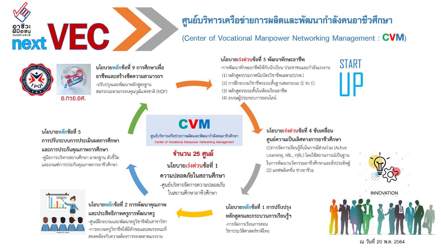 - การพัฒนาสถานศึกษาตามโมเดลการบริหารจัดการศูนย์บริหารเครือข่ายการผลิตและพัฒนากำลังคนอาชีวศึกษา