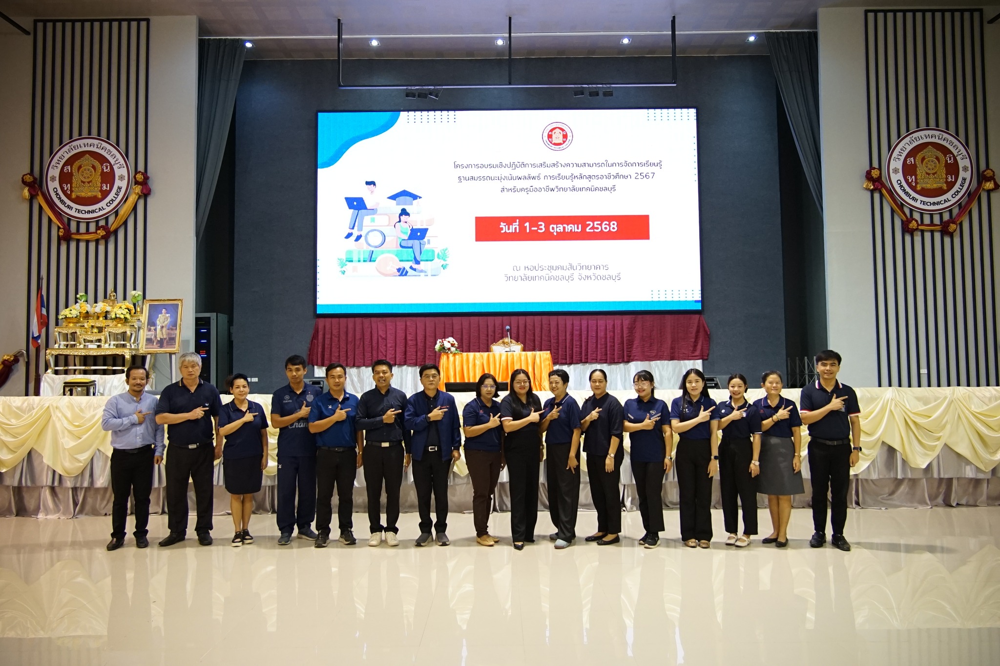 1 ตุลาคม 2568 ดร.พีรพงษ์ พันธ์โสดา ผู้อำนวยการวิทยาลัยเทคนิคชลบุรี พร้อมด้วยผู้บริหาร คณะครู ให้การต้อนรับ ดร.อภิชาติ เนินพรหม ศึกษานิเทศก์เชี่ยวชาญ คณะวิทยากร เป็นประธานในพิธีเปิดกิจกรรมตามโครงการอบรมเชิงปฏิบัติการเสริมสร้างความสามารถในการจัดการเรียนรู้ฐานสมรรถนะ มุ่งเน้นผลลัพธ์การเรียนรู้หลักสูตรอาชีวศึกษา 2567 สำหรับครูมืออาชีพวิทยาลัยเทคนิคชลบุรี ณ หอประชุมคมสันวิทยาคาร วิทยาลัยเทคนิคชลบุ